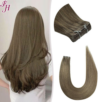 Fh रूसी रेमी टेप बालों के उच्च गुणवत्ता वाले जैतून का रंग पु अदृश्य टेप सहज मानव बालों के विस्तार में